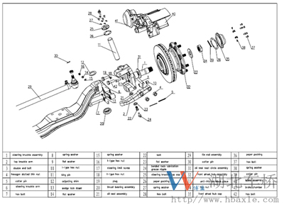 圖為HT30F05 前軸總成結(jié)構(gòu)圖(僅供參考)