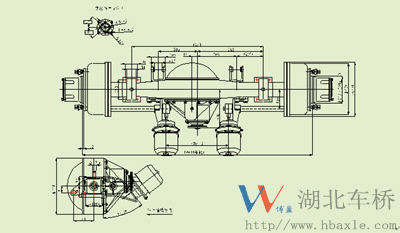401K75-010-5.286主減速器總成是我廠根據(jù)客車廠家的要求,設(shè)計(jì)突緣端面至橋殼中心線距離為280mm(見(jiàn)如下安裝尺寸圖)。主從動(dòng)錐齒輪是專門(mén)針對(duì)客車要求噪音低、壽命長(zhǎng)等特點(diǎn)而開(kāi)發(fā)的,其傳遞扭矩16500N.M,裝配成總成后噪音在84dB以下,壽命可達(dá)70萬(wàn)次以上,深受用戶的好評(píng)。
