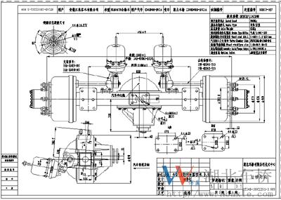 2401B188-010-3.909主減速器總成噪音低,傳遞扭矩大。其設(shè)計(jì)突緣端面至橋殼中心線距離為328mm(見(jiàn)如下安裝尺寸圖)。主從動(dòng)錐齒輪噪音低、壽命長(zhǎng)等特點(diǎn),其傳遞扭矩18000N.M,裝配成總成后噪音在84dB以下,壽命可達(dá)70萬(wàn)次以上。