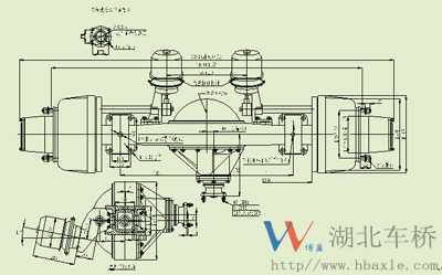 HT24F152-010-5.13主減速器總成噪音低,傳遞扭矩大。其突緣端面至橋殼中心線距離為369mm(見如下安裝尺寸圖)。主從動錐齒輪有噪音低、壽命長的特點,其傳遞扭矩24000N.M,裝配成總成后噪音在84dB以下,壽命可達70萬次以上。